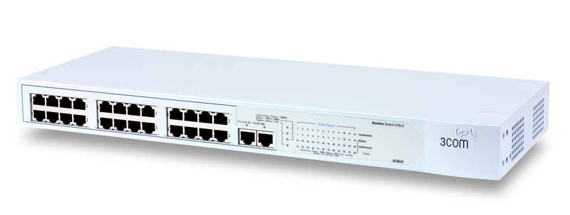 The 3Com Baseline Switch 2024 is a 24-port unmanaged, 10/100 nonblocking switch designed for small to midsize offices. This rack mountable, business-class switch can be installed in a wiring closet or as a free-standing unit.