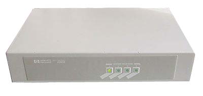 A console switch allows control of multiple HP NetServers and Vectra PCs from a single keyboard, monitor and mouse. Two models are available for controlling either four or eight servers. The switches may be daisy-chained together to control up to 64 servers. Connect daisy-chained switches with the switch-to-server cable sets. Note that daisy chaining uses one of the available ports. The switches are firmware-controlled and require only 1 EIA unit when mounted in the front of the rack. The switchbox may also be mounted in the rear of the rack behind any other device where there is space. Rear mounting frees up 1 EIA unit in the front of the rack.