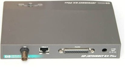 The HP JetDirect EX Plus Ethernet print server is an external network interface for mixed-LAN environments and supports all major network operating systems for Ethernet networks. It turns a Hewlett-Packard parallel-port printer into a highly-effective network printer. This print server supports virtually any HP or non-HP printer with a parallel port. (Except GDI printers or HP DeskJet 710, 720, 820, and 1000 printers and HP LaserJet 3100xi Printer-Fax-Copier-Scanner).