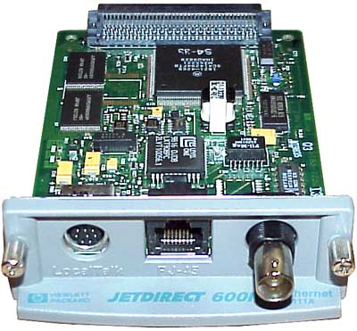 This is an Internal Combination 10Base-T/10Base2 and LocalTalk Network interface card. It is ideal for network managers who manage HP EIO printers. Internal print servers provide the simplest way to share an HP EIO printer on a network. JetDirect 600N are designed for any HP LaserJet, HP Mopier 240 and 320, and HP 9100 C Digital Sender.