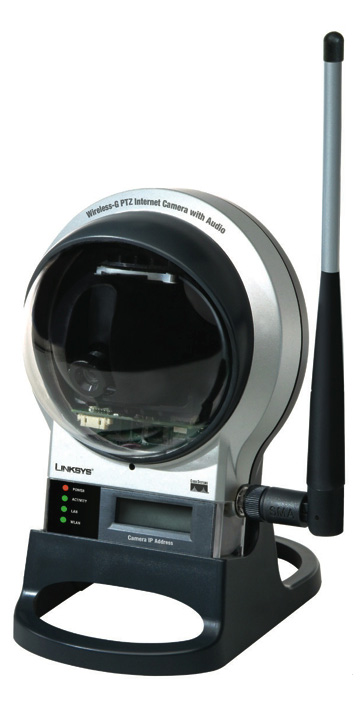 The Linksys Wireless-G Pan/Tilt/Zoom Video Camera sends live video through the Internet to a web browser anywhere in the world!