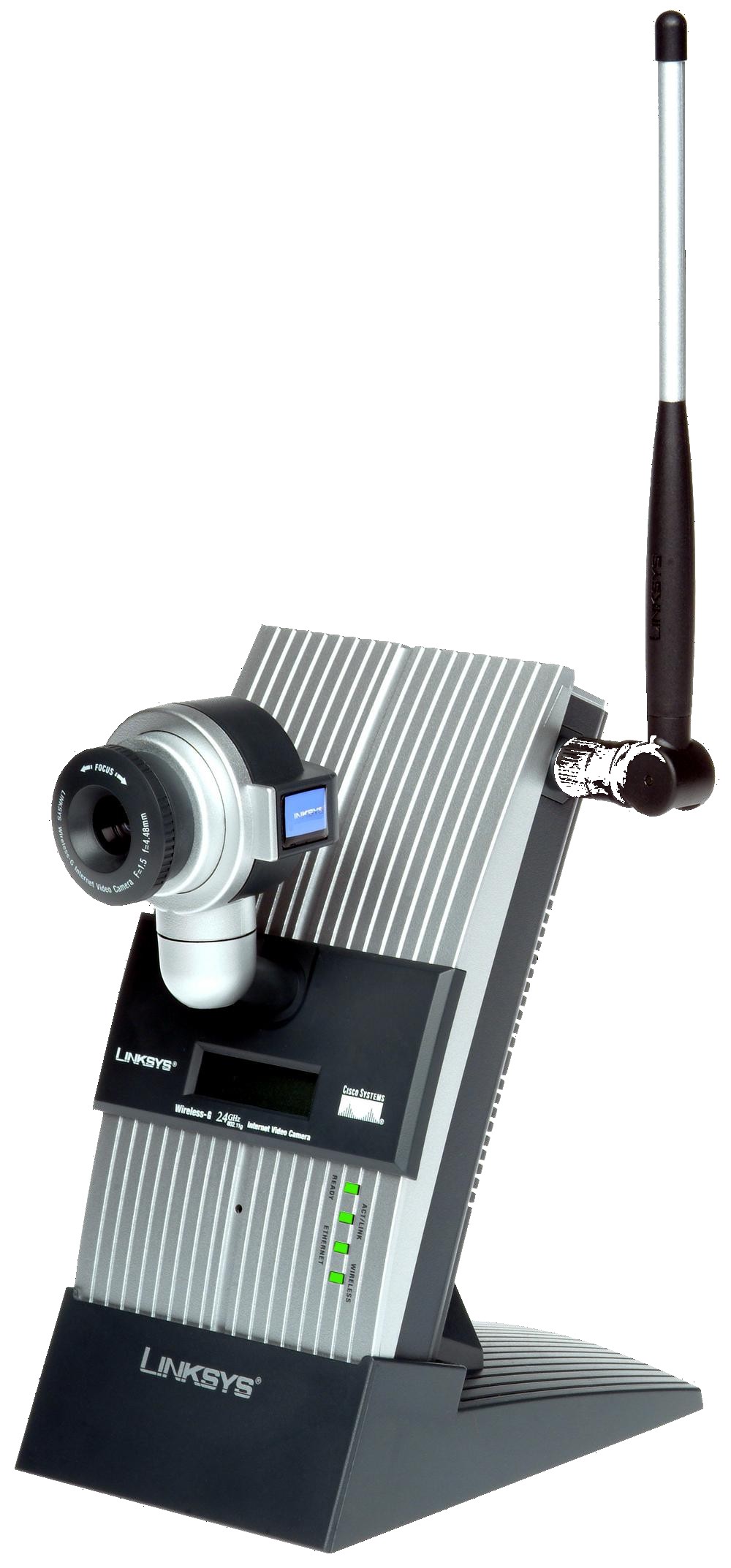 The Linksys Compact Wireless-G Internet Video Camera sends live video through the Internet to a web browser anywhere in the world! This compact, self-contained unit lets you keep track of your home, your kids, your workplace — whatever’s important to you. Unlike standard “web cams” that require an attached PC, the Internet Video Camera contains its own web server, so it can connect directly to a network, either over Wireless-G (802.11g) networking, or over 10/100 Ethernet cable. The advanced MPEG-4 video compression produces a high-quality, high-frame rate, up to 320×240 video stream.
