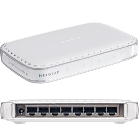 Hang on – your network will soar when it is hooked up to NETGEAR’s FS608! This powerful plug-and-play switch connects at 10 or 100 Mbps and makes it easy to link as many as eight computers or peripherals to your Ethernet network. You’ll experience maximum performance for 10 or 100 Mbps devices with eight ports that automatically sense the correct speed while Auto Uplink on the ports adjusts for the different types of Ethernet cables. The FS608’s sleek case has lights on the front for easy monitoring. Installation into your home network couldn’t be simpler and, once powered on, it begins cool and silent operation – without an internal fan.