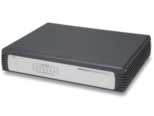 The 3Com OfficeConnect Fast Ethernet Switch 16 is an affordable, unmanaged Layer 2,10/100 switch. It is designed for branch offices, small offices and the home office requiring reliable LAN connectivity. The OfficeConnect Fast Ethernet Switch 16 features sixteen 10/100 ports.